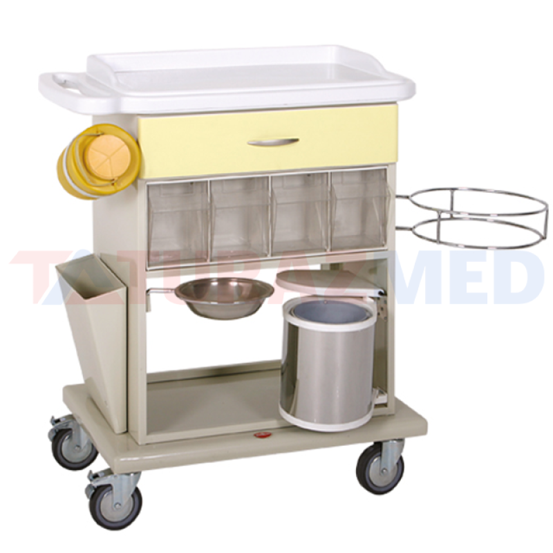 Technical Specifications ABS plastic drug preparation table Oxygen cylinder basket 1 adet çekmece 4 pieces large size plastic drawer box Medical waste bin Waste bin Drum place 125 mm diameter cross braking castors